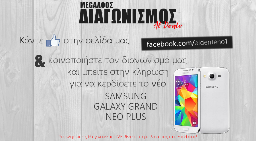 To E-aldente.gr διοργανώνει διαγωνισμό και σας δίνει τη δυνατότητα να κερδίσετε ένα Samsung Galaxy Grand Neo PLUS!