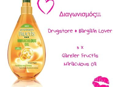 Το Drugstore & Bargain Loverδιοργανώνει διαγωνισμό και σας δίνει τη δυνατότητα να κερδίσετε 3 Garnier Fructis Miraculous Oil.