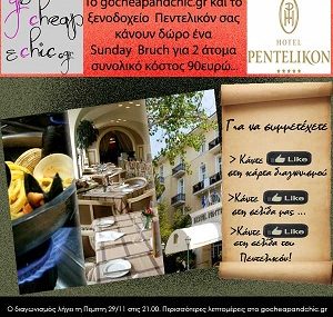 Το Gocheapandchic.gr διοργανώνει διαγωνισμό και σας δίνει τη δυνατότητα να κερδίσετε ένα γεύμα Sunday Bruch για δύο άτομα αξίας 90€ στο La locanda του Πεντελικόν.
