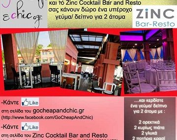 Το gocheapandchic.gr διοργανώνει διαγωνισμό και σας δίνει τη δυνατότητα να κερδίσετε ένα γεύμα/ δείπνο για 2 άτομα στο Zinc.