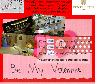To gocheapandchic.gr και το ξενοδοχείο Πεντελικόν σας κάνουν δώρο μία διανυκτέρευση στο ξενοδοχείο Πεντελικον, την ημέρα του Αγ. Βαλεντίνου, μαζί με πρωινό και χρήση γυμναστηρίου.