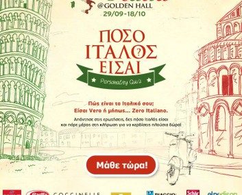 Το My Golden Hall διοργανώνει διαγωνισμό και σας δίνει τη δυνατότητα να κερδίσετε 4 ακτοπλοϊκά εισιτήρια για Ιταλία από Πάτρα, 1 ράδιο Vespa, 1 βαλίτσα Vespa, 1 κιβώτιο με τα gluten-free προϊόντα Schar, 1 τσάντα OSLO, 5 συλλεκτικά δοχεία αποθήκευσης ζυμαρικών και δωρεάν προμήθεια ηλεκτρικού ρεύματος για έξι μήνες.