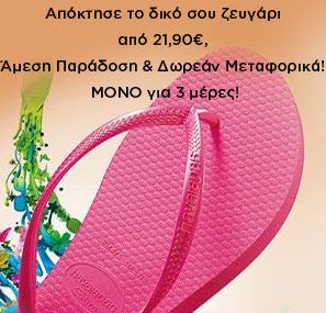 Το goldenbrands.gr σας προσφέρει τη νέα συλλογή Havaianas flips-flops στα πιο απίθανα καλοκαιρινά χρώματα από 21,90€!