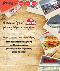 Τα Goody’s διοργανώνουν διαγωνισμό και σας δίνει τη δυνατότητα να κερδίσετε 3 γεύματα Goody’s αξίας 25 Ευρώ.