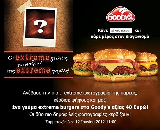 Τα Goody’s διοργανώνουν διαγωνισμό και δίνουν τη δυνατότητα σε 2 τυχερούς να κερδίσουν από ένα γεύμα Extreme Burgers στα Goody’s αξίας 40 Ευρώ.
