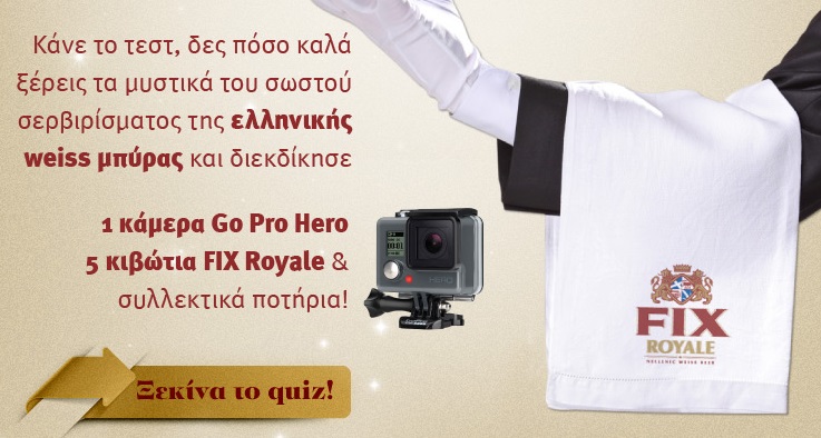 H Fix Royale διοργανώνει διαγωνισμό και σας δίνει τη δυνατότητα να κερδίσετε μία κάμερα GoPro Hero και άλλοι τέσσερις τυχεροί νικητές από ένα κιβώτιο Fix Royale φιάλη των 330 ml και μία (1)- 6άδα ποτήρια Fix Royale!