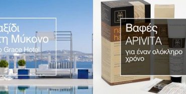 Η Apivita διοργανώνει διαγωνισμό και σας δίνει τη δυνατότητα να κερδίσετε 3 διανυκτερεύσεις με πρωινό για δύο άτομα σε κατηγορία δωματίου Deluxe Room στο ξενοδοχείο Grace Mykonos Hotel (1ος νικητής) και βαφές APIVITA για 1 ολόκληρο χρόνο (για 12 νικητές).