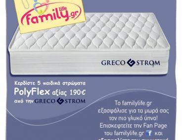 Το familylife.gr διοργανώνει διαγωνισμό και δίνει τη δυνατότητα σε 5 τυχερούς να κερδίσουν από ένα στρώμα Polyflex baby αξίας 190€ το κάθε ένα, προσφορά της εταιρείας GRECO STROM.