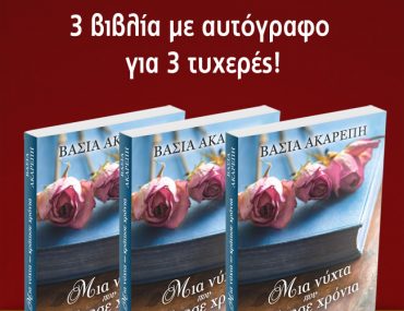 Το Gynaika.gr εξασφάλισε για εσάς 3 βιβλία με αυτόγραφο της Βάσιας Ακαρέπη “Μια νύχτα που κράτησε χρόνια”!