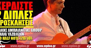 Το Ogdoo.gr εξασφάλισε για τους αναγνώστες του πέντε διπλές προσκλήσεις για τη συναυλία του Μάκη Αμπλιανίτη με τον Haig Yazdjizan στο Half Note Jazz Club, στις 20 Οκτωβρίου 2012.