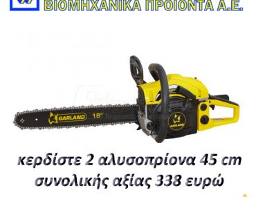Το happystar.gr διοργανώνει διαγωνισμό και σας δίνει τη δυνατότητα να κερδίσετε 2 αλυσοπρίονα GARLAND από την Αναστάσιος Ματτές ΑΕ συνολικής αξίας 338 ευρώ!