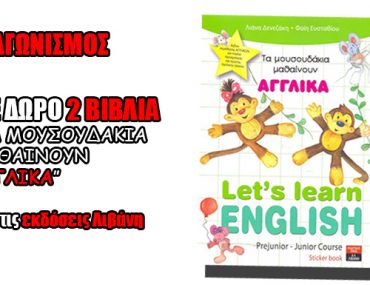 Το HappyTv.gr χαρίζει σε 2 τυχερούς το βιβλίο «Τα μουσουδάκια μαθαίνουν αγγλικά – Let’s learn English» της Λιάνας Δενεζάκη & της Φαίης Ευσταθίου που κυκλοφορεί από τις εκδόσεις Λιβάνη.