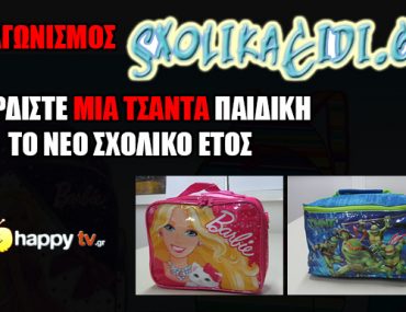 Το HappyTv.gr σε συνεργασία με το www.sxolikaeidi.gr χαρίζουν μία παιδική τσάντα φαγητού για το σχολείο. Ο νικητής θα είναι ένας και θα διαλέξει ανάμεσα στις δύο τσάντες.
