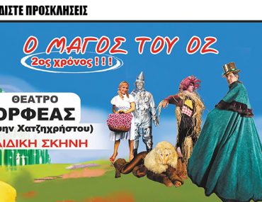 Το HappyTv.gr χαρίζει σε 4 τυχερούς από μία διπλή πρόσκληση για την παράσταση “Ο μάγος του οζ” στο Θέατρο Ορφέας.