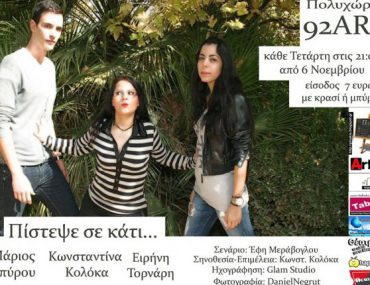 Το happytv.gr διοργανώνει διαγωνισμό και σας δίνει τη δυνατότητα να κερδίσετε μία διπλή πρόσκληση για την παράσταση «Πίστεψε σε κάτι…» στον πολυχώρο 92ART, για την Τετάρτη 13 Νοεμβρίου 2013 στις 9μμ.