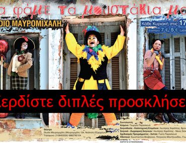 Το HappyTv.gr χαρίζει 2 διπλές προσκλήσεις για την παιδική παράσταση «Θα φάμε τα μουστάκια μας» για την Κυριακή 12 Ιανουαρίου στις 3 το μεσημέρι στο Studio Μαυρομιχάλη.