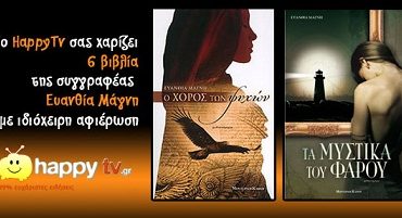 Η συγγραφέας και στιχουργός Ευανθία Μάγνη σε συνεργασία με το HappyTv χαρίζουν σε 6 τυχερούς 6 βιβλία της. Τα 3 βιβλία έχουν τον τίτλο «Τα μυστικά του Φάρου», ενώ τα άλλα 3 βιβλία «Ο χορός των ψυχών».