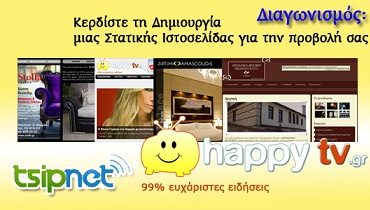 Το happytv.gr σε συνεργασία με την tsipnet.eu σας δίνουν τη δυνατότητα να κερδίσετε τη δημιουργία μίας στατικής ιστοσελίδας.