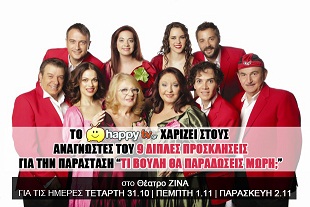 Το HappyTv χαρίζει σε 9 τυχερούς από μία διπλή πρόσκληση για την παράσταση «Τι βουλή θα παραδώσεις μωρή;» στο Θέατρο Ζίνα.