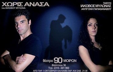 Το happytv.gr διοργανώνει διαγωνισμό και σας δίνει τη δυνατότητα να κερδίσετε 2 διπλές προσκλήσεις (1 για Παρασκευή, 1 για Σάββατο) για την παράσταση “Χωρίς Ανάσα” του Ιάκωβου Μυλωνά, στο Θέατρο 90 Μοιρών στη Θεσσαλονίκη.