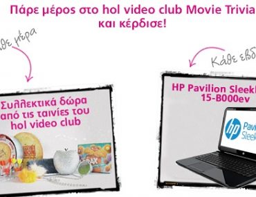 Η σελίδα hellas online διοργανώνει διαγωνισμό και σας καλεί να απαντήσετε στις καθημερινές 5 ερωτήσεις κινηματογραφικού περιεχομένου του διαγωνισμού, ώστε να συγκεντρώστε πόντους και να μπείτε στις καθημερινές κληρώσεις για συλλεκτικά κινηματογραφικά δώρα και στην εβδομαδιαία κλήρωση για ένα Pavilion Sleekbook 15 B00.