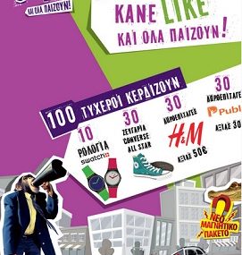 Η σελίδα Twist Greece and Cyprus διοργανώνει διαγωνισμό και σας δίνει τη δυνατότητα να κερδίσετε 10 ρολόγια “SWATCH”, 30 ζευγάρια παπούτσια “ALL STAR CONVERSE”, 30 δωροεπιταγές αξίας 50 ευρώ από τα καταστήµατα “H&M”, 30 δωροεπιταγές αξίας 30 ευρώ από τα καταστήµατα “Public”.