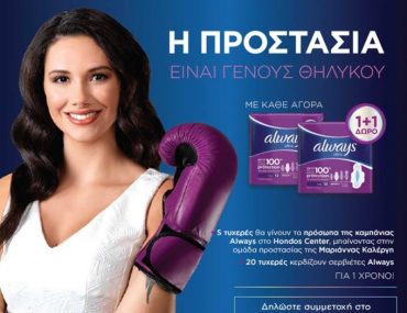 Το hondos center διοργανώνει διαγωνισμό και δίνει τη δυνατότητα σε 5 τυχερές να κερδίσουν μαθήματα αυτοπροστασίας και σε 20 ακόμα τυχερές να κερδίσουν προϊόντα Always για 1 ολόκληρο χρόνο!