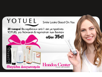 Tα Hondos Center διοργανώνουν διαγωνισμό και δίνουν τη δυνατότητα σε 20 τυχερούς να κερδίσουν από ένα σετ περιποίησης και λεύκανσης δοντιών Yotuel!