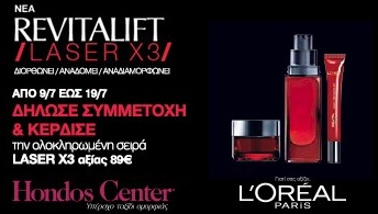 Το hondoscenter.gr διοργανώνει διαγωνισμό και σας δίνει τη δυνατότητα να κερδίσετε 10 set της νέας αποκλειστικής σειράς L’Oréal Paris Revitalift Laser X3.