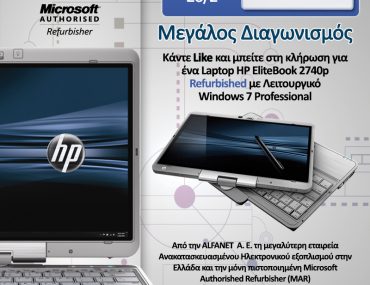 09-02-2014 Διαγωνισμός Alfanet SA με δώρο ένα Refurbished Hp EliteBook 2740p Η Alfanet SA διοργανώνει διαγωνισμό και σας δίνει τη δυνατότητα να κερδίσετε ένα Refurbished Hp EliteBook 2740p! Περισσοτερα...