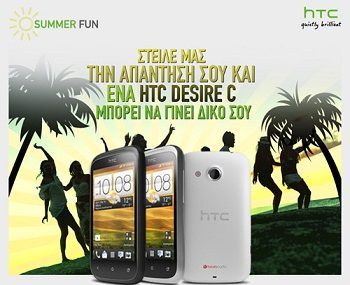 Η HTC Greece διοργανώνει διαγωνισμούς HTC Summer Fun και σας δίνει τη δυνατότητα να κερδίσετε ένα HTC Desire C κάθε εβδομάδα.