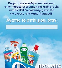 Η σελίδα “I Love My Home” διοργανώνει διαγωνισμό και σας δίνει τη δυνατότητα να κερδίσετε 300 δωροεπιταγές των 10€ για αγορές στα καταστήματα ΑΒ Βασιλόπουλος.