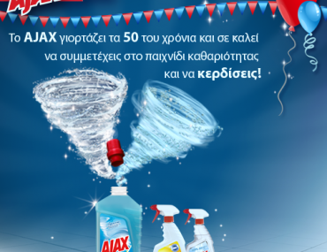 Η σελίδα I Love My Home διοργανώνει το διαγωνισμό “50 Χρόνια AJAX” και σας δίνει τη δυνατότητα να κερδίσετε 50 δωροκουτιά, που περιλαμβάνουν 7 προϊόντα AJAX.
