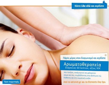 Το iatronet διοργανώνει διαγωνισμό και σας δίνει τη δυνατότητα να κερδίσετε 5 αρωματοθεραπείες διάρκειας 60 λεπτών, αξίας 90€.