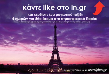 Το in.gr σε συνεργασία με το travelplan.gr σάς στέλνει στο Παρίσι μαζί με τον σύντροφό σας ή τον κολλητό σας! Μπείτε στην κλήρωση και γίνετε εσείς ο τυχερός που θα κερδίσει ένα μαγευτικό ταξίδι 4 ημερών στην Πόλη του Φωτός.