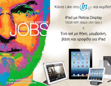 Το in.gr με αφορμή την ταινία “Jobs” σάς χαρίζει ένα iPad! Πάρτε μέρος στο μεγάλο διαγωνισμό!! Μπείτε στην κλήρωση και γίνετε εσείς ο τυχερός/η τυχερή που θα κερδίσει ένα iPad με Retina Display (16GB WiFi Black4th Gen.) και ένα set με θήκη, μεμβράνη, βάση και γραφίδα iPad.