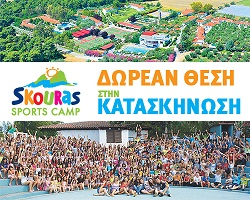 Το infokids.gr και η αθλητική κατασκήνωση Σκούρας διεξάγουν διαγωνισμό και προσφέρουν 1 δωρεάν συμμετοχή για 12 ημέρες στην κατασκήνωση την περίοδο του Αυγούστου.