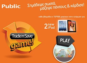 Το Public σας καλεί να παίξετε το παιχνίδι Trade n Save με δώρο 2 new Apple iPads (iPad 3) κάθε εβδομάδα.