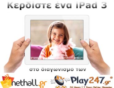 Το ηλεκτρονικό κατάστημα Play247.gr σε συνεργασία με το Nethall.gr διοργανώνουν διαγωνισμό και σας δίνουν τη δυνατότητα να κερδίσετε το Apple New iPad (iPad 3) Wi-Fi 16GB White.
