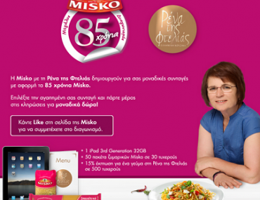 Η Misko διοργανώνει διαγωνισμό και δίνει τη δυνατότητα σε 1 τυχερό κάθε μέρα να κερδίσει 50 πακέτα ζυμαρικών Misko και σε ένα τυχερό στο τέλος του διαγωνισμού να κερδίσει 1 iPad 3rd Generation 32GB .