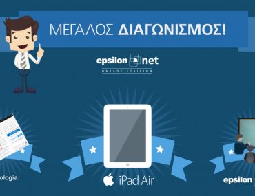 Η Epsilon Net διοργανώνει διαγωνισμό και σας δίνει τη δυνατότητα να κερδίσετε ένα iPad Air 16GB αξίας 509€, 5 ετήσιες συνδρομές e-forologia, με δωρεάν χρήση των υπηρεσιών της On Line Τράπεζας αξίας 195€ και 10 δωρεάν συμμετοχές σε ημερίδες του Epsilon Training αξίας 150€, δώρα συνολικής αξίας 3.000€!