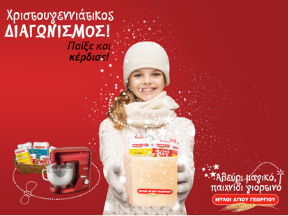 Η σελίδα Μύλοι Αγίου Γεωργίου διοργανώνει το διαγωνισμό «Αλεύρι Μαγικό Παιχνίδι γιορτινό» και σας δίνει τη δυνατότητα να κερδίσετε 1 κουζινομηχανή Izzy SPICY RED SM1688H και 15 σετ με προϊόντα «Μύλοι Αγίου Γεωργίου».