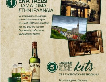 Το Jameson Irish Whiskey διοργανώνει διαγωνισμό και σας δίνει τη δυνατότητα να κερδίσετε ένα ταξίδι στην Ιρλανδία για δύο άτομα και 5 Jameson kits κάθε εβδομάδα!