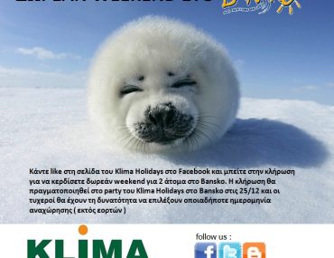 Το Klima Holidays διοργανώνει διαγωνισμό και σας δίνει τη δυνατότητα να κερδίσετε ένα Weekend για 2 άτομα στο Bansko.