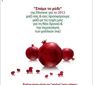 Η Klorane Greece “Σπάει το Ρόδι” για το 2012 μαζί σας & σας προσφέρει μαζί με τις ευχές για τη Νέα Χρονιά & την περιποίηση των μαλλιών σας.