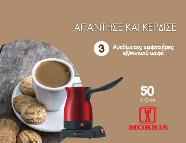 O Kotsovolos διοργανώνει διαγωνισμό και δίνει τη δυνατότητα σε 3 τυχερούς να κερδίσουν από ένα Morris S1429GCM για τέλειο ελληνικό καφέ!
