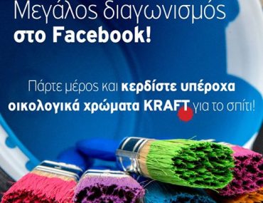 Η σελίδα Kraft Paints διοργανώνει διαγωνισμό και δίνει τη δυνατότητα κάθε εβδομάδα σε 5 νικητές να κερδίσουν από μία συσκευασία εννέα λίτρων (9 lt.) χρώματος ECO, από το χρώμα που έχουν επιλέξει.