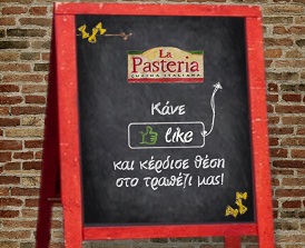 Τα La Pasteria διοργανώνουν διαγωνισμό και σας δίνουν τη δυνατότητα, κάθε εβδομάδα,να κερδίσετε ένα τραπέζι για 4 άτομα συνολικής αξίας μέχρι 100€, σε κατάστημα La Pasteria της επιλογής σας.