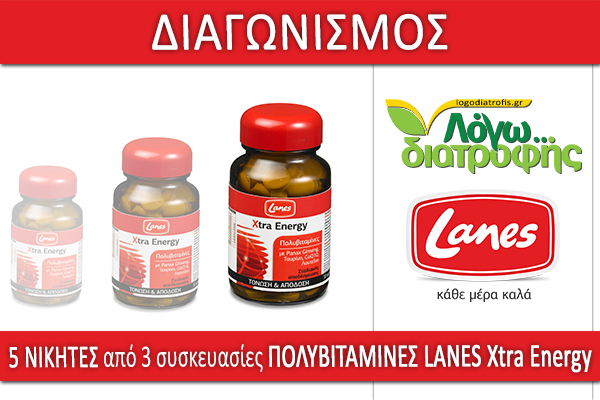 Η σελίδα logodiatrofis.gr διοργανώνει διαγωνισμό και δίνει τη δυνατότητα σε 5 τυχερούς να κερδίσουν από 3 πολυβιταμίνες Lanes Xtra Energy!