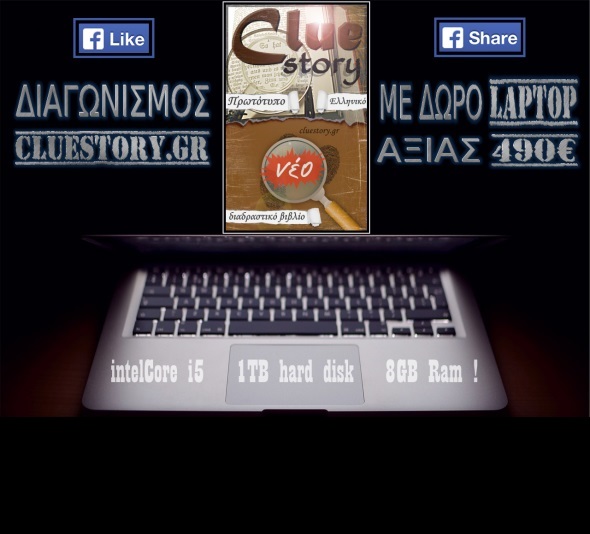 To ClueStory.gr διοργανώνει διαγωνισμό και σας δίνει τη δυνατότητα να κερδίσετε ένα Laptop Dell Inspiron 3542 (IntelCore i5, 8GB RAM, 1TB σκληρός δίσκος) αξίας 490€!